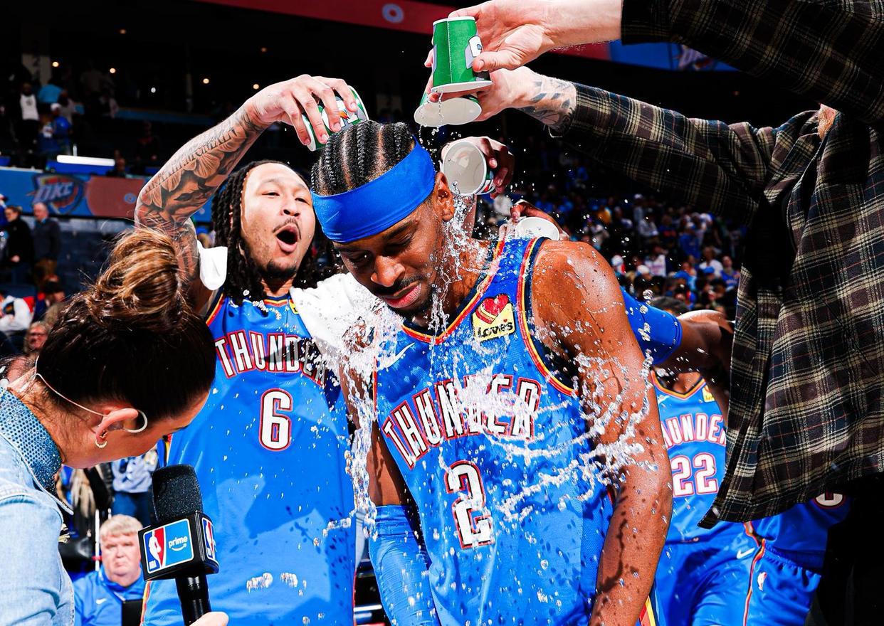 和其他球队核心相比,亚历山大有一点独到的优势,那就是得分实在太稳定了,更何况还是一个后卫。首先从赛季来看,亚历山大已经连续4年场均得分30+,且命中率超过50%,自步入巅峰期以后,他一直在稳步提升自己的能力,三分球逐渐练出来的同时,组织能力也有所提升,本赛季亚历山大55.4%的投篮命中率,也为创造了其职业生涯新高。其次这段时间的得分表现来看,亚历山大已经连续127场常规赛得分都超过20+,他刚刚打破了张伯伦在这项数据的纪录,排名NBA历史第一,这种等级的稳定实属罕见。而亚历山大还不是单纯的刷分,他的数据是建立在胜利的基础上的。
